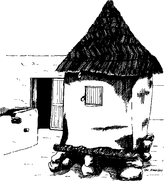 Par ailleurs, il existe aussi chez les Gourmantché une structure de stockage en banco, recouverte d'un toit en paille et de petite dimension (cf. figure B.4). Ce grenier est destiné à la conservation du grain battu, pour un à deux mois de consommation familiale.