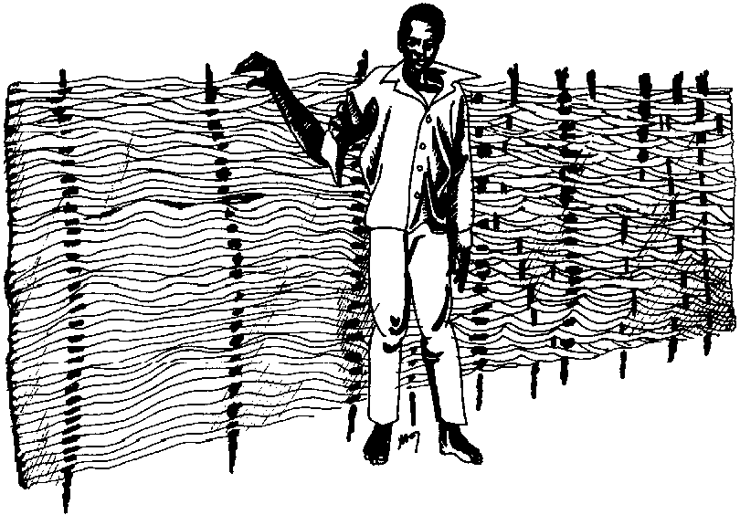 Tous les membres de la famille participent à la récolte du sorgho. Les enfants couchent les tiges sur le sol, les hommes coupent: les épis et les entassent sous les arbres, les vieillards les mettent: en bottes et les femmes les transportent au village. L'essentiel du séchage ayant déjà eu lieu sur pied au cours des deux ou trois semaines précédant la récolte, les épis peuvent être directement stockés dans les greniers.