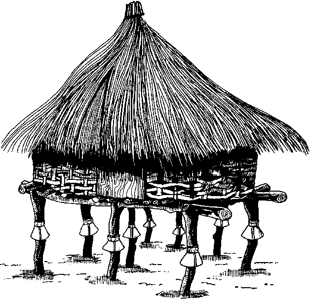 Figure F.2: Grenier traditionnel Bwaba. Ici la toiture traditionnelle en paille est remplacée par des tôles.