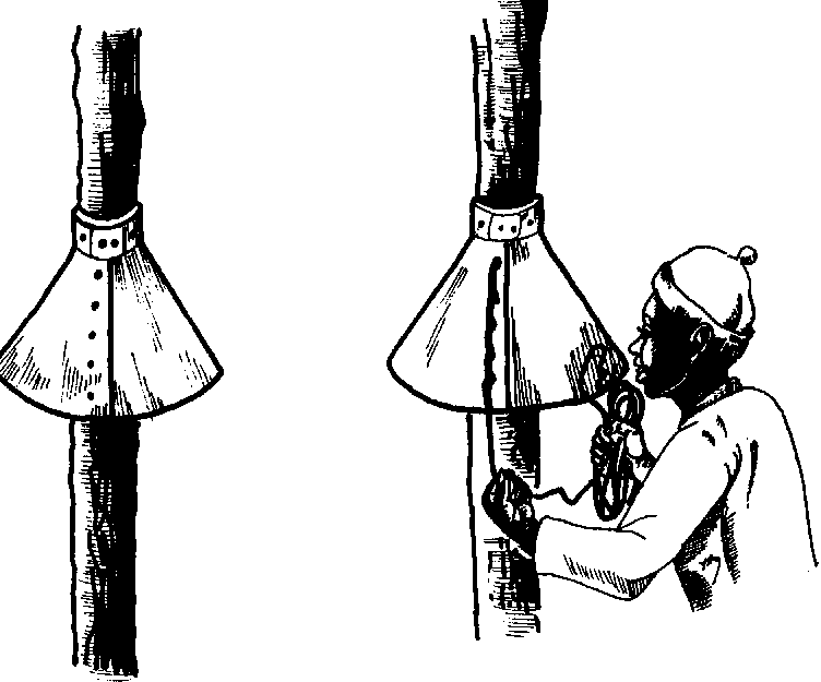 Malgré quelques tentatives, les paysans n'ont pas encore trouvé la solution qui réglerait leur problème. Pourtant, le Bountoung étant un grenier très surélevé (plate-forme à 1,50 m de haut), il est relativement facile d'y adapter un système de protection contre les rongeurs (rat-guard) (cf. figures E.3 et E.4) à mi-hauteur, sur chacun des poteaux de support. Cela empêcherait les rongeurs d'avoir accès aux produits stockés dans le grenier.