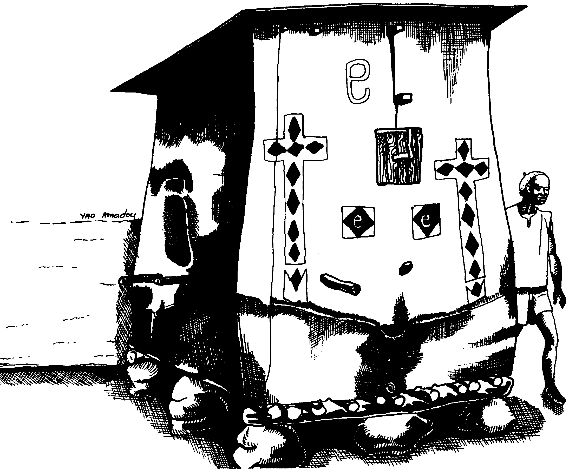 Le Nanou, ou grenier collectif extérieur, qui a une forme trapézoïdale (cf. figure F.1), est installé sur une plate-forme faite de branchages, comme le grenier Dogon. Cette plate-forme est soutenue par six ou neuf grosses pierres. Le corps du grenier, d'une capacité moyenne de 10 m3, est monté en mortes de banco disposées en couches, qui s'imbriquent les unes dans les autres.