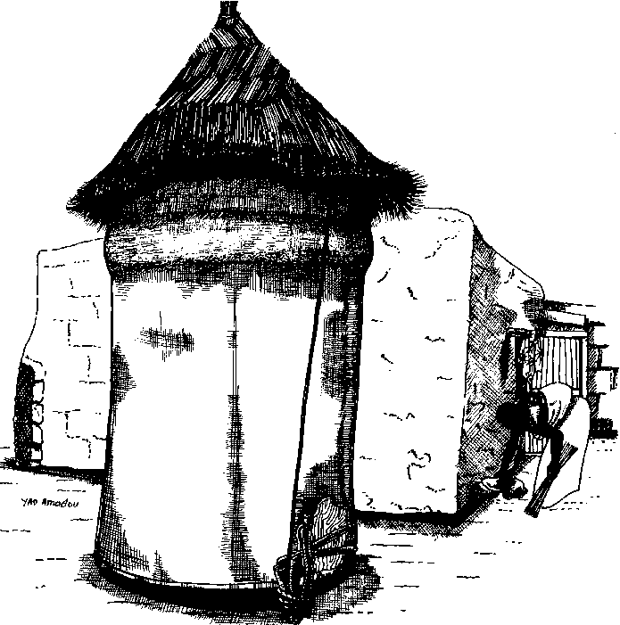 Il existe aussi des greniers individuels: le Gwa-în, grenier particulier des femmes, et le Gwa-ya, grenier des hommes, où l'on conserve surtout le fonio, les légumineuses et autres denrées secondaires.