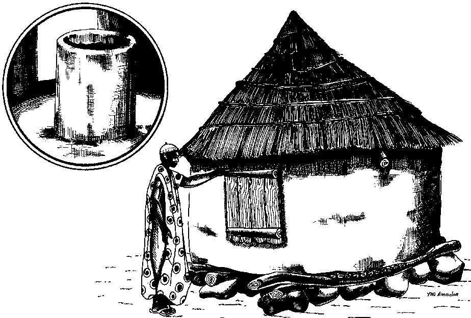 Avant l'apparition des contraintes relatives à l'insuffisance de maind'oeuvre mentionnées précédemment et l'introduction de nouveaux ravageurs avec les importations de riz, les greniers traditionnels bénéficiaient- d'un recrépissage intérieur et extérieur soigné, qui devait avoir un certain effet prophylactique. Cette pratique ancienne peut expliquer la qualité de conservation du grenier traditionnel, affirmée par les paysans.
