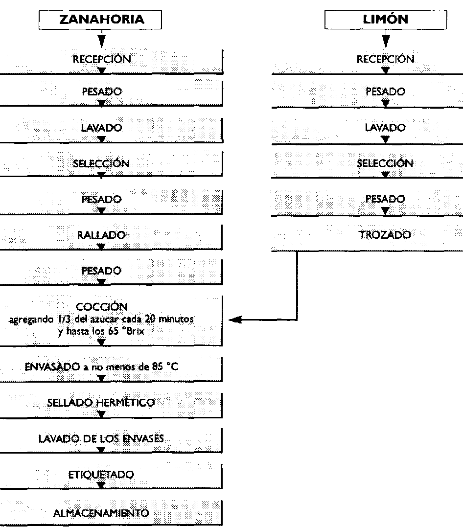 El procedimiento para la elaboración de las mermeladas de zanahoria y limón y de mermeladas de zanahoria y naranja, es similar, por lo tanto se describirá solamente la primera.
