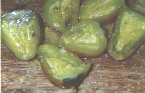 Pulpa en el fruto y semillas despulpadas (G. Paltrinieri)