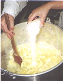 Calentando los trozos antes de agregar azúcar (G. Paltrinieri)