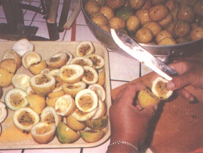 Corte de frutos en mitades para separar pulpa con semillas (G. Paltrinieri)