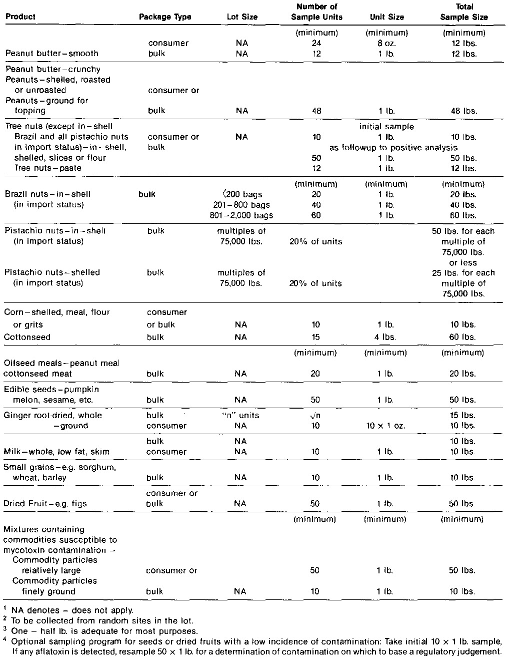 Product sample sizes used by the United States Food and Drug Administration for mycotoxin analysis.