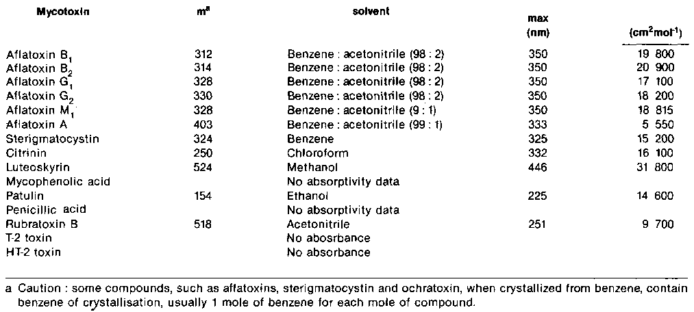 Table II Source of Mycotoxin Reference Standard