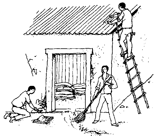 El material ensacado debe estar protegido; si se ha roto el cierre (por causa de insectos, roedores o una manipulación descuidada), el grano queda sin protección ni ventilación, y las pérdidas pueden ser graves.