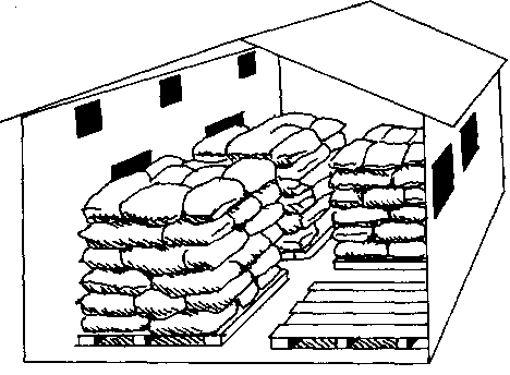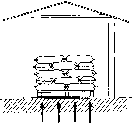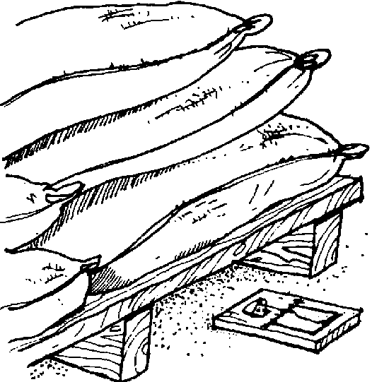 También se pueden colocar en el suelo palos rectos sobre los cuales se apilan los sacos.