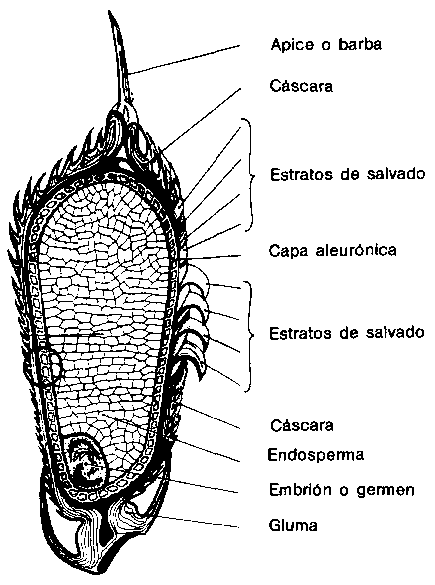 Figura 13.2: Sección vertical ampliada del grano de arroz càscara