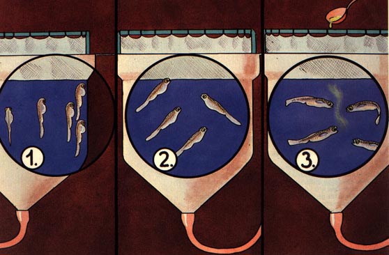 It is necessary for the early fry to eat a rich complete food as soon as possible.