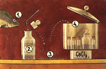 Whenever possible, hypophyses (pituitary glands) should be collected from mature, freshly killed carp. They should then be dehydrated and stored. These dried hypophyses will be needed for the preparation of the hormonal extract to be injected into the carp breeders for inducing their maturation.