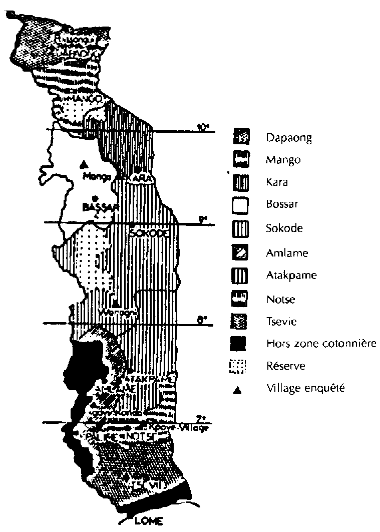 A travers une «approche système», la section d'agroéconomie de l'IRCT-Togo a mis en place une étude de cas de quelques exploitations agricoles dans la zone cotonnière du Togo, aire d'intervention de la Société togolaise du coton (SOTOCO). Cette étude de cas se veut explicative des mécanismes de fonctionnement des unités de production (UP) ou exploitations agricoles. Sa finalité est de mettre à la disposition des différents partenaires du développement rural des outils d'aide à la décision.