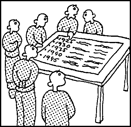 This tool consists of a set of pre-designed posters which depict local happenings, usually over a long period of time. The posters are then chronologically sequenced by the group to tell the story as it happened. The posters can cover the community's history, problems, beliefs, practices, and values.