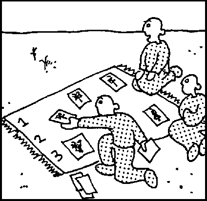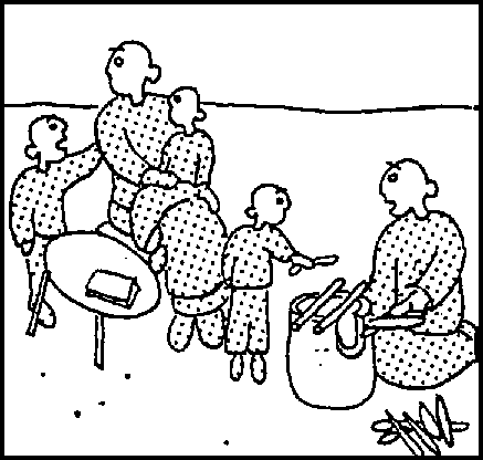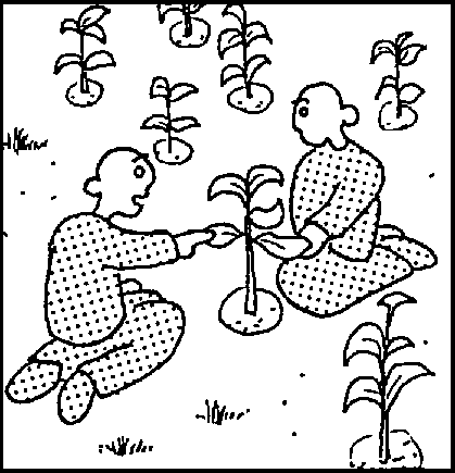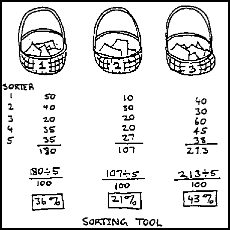 An example of a sorting tool was found in a community which needed information on the economics of households. A list was made of all 100 households, and each household was assigned a number (the exercise works best with fewer than 150 households). The name of each household and the number from the master list was written on a separate card. Selected community members (a cross section shows interesting results, and exercise may be done in separate groups) were asked to sort the cards into three baskets (if the sorter is not literate, the name on the card is read, and then handed to them to place in the basket of their choice).