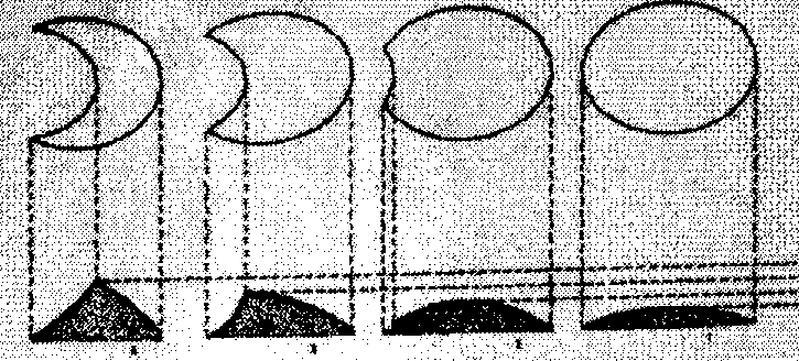 - Forme ovoide couvrant presque entièrement l'obstacle et avec une légère et courte pointe au côté sous le vent. Cette forme est le deuxième stade de formation de la nebka en flèche.