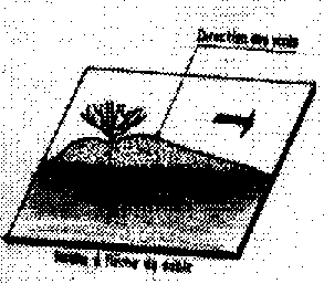 Le sens du dernier vent ayant soufflé s'obtient en mesurant à l'aide d'une boussole de poche la direction de la progression de la trainée de sable derrière la touffe de végétation.