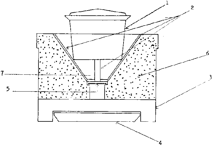 (iii) Le foyer conique doit comporter sur sa surface quatre rainures d'environ 30 mm de large et 4 mm de profondeur, qui servent de conduits pour permettre aux gaz chauds de s'échapper même au cas où la marmite s'ajusterait hermétiquement sur le cône.