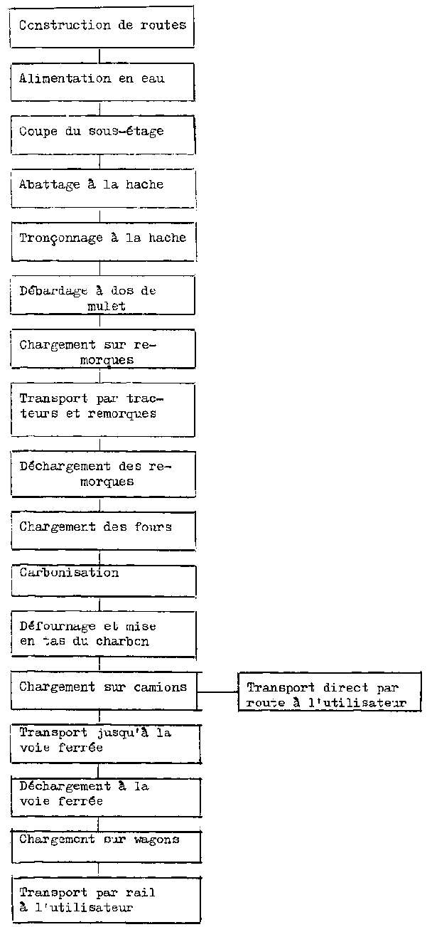 Fig. 14 Opérations élémentaires dans la production de charbon de bois