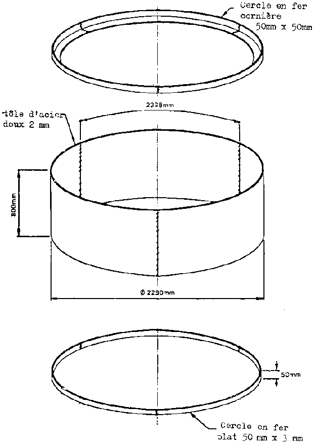 Soit tôle de 3 mm, soit tuyau d'acier de ø 120 mm |