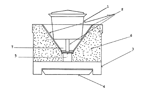 (iii) El agujero cónica para el fuego en la hornalla deberá tener alrededor de cuatro conductos para el flujo de los gases en su superficie, de alrededor de 30 mm de ancho y 4 mm de profundidad para hacer que el gas caliente pase descargándose, si bien la vasija para cocinar puede ser ajustada firme en el cono.
