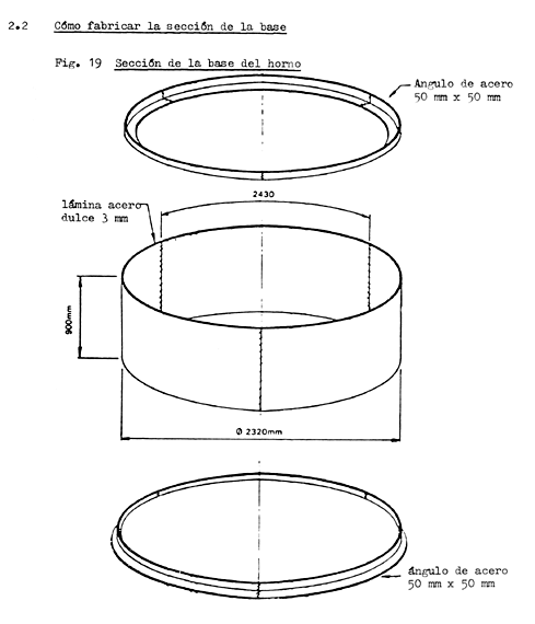 Siguen las instrucciones para la construcción y el ensamble. La Fig. 18 es un dibujo dimensionado para la construcción. Leer bien las instrucciones antes de iniciar la construcción del horno.