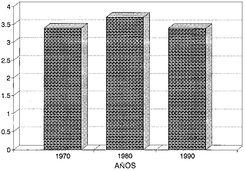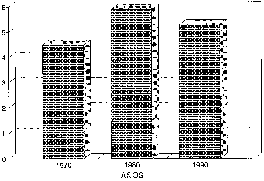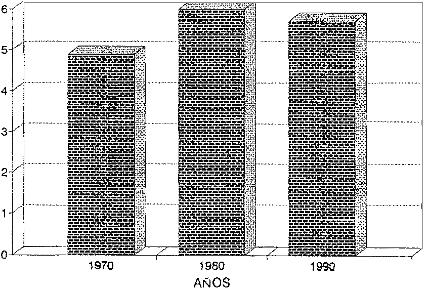 En general, en todas las Regiones estudiadas el CFH aumentó entre los años 1970 y 1990 superando el nivel de 5 bep/hab/año, con excepción de CENTROAMERICA en la cual se mantuvo aproximadamente alrededor de 3,5 bep/habitante/año, superando el nivel de 5 bep/hab/año. En el Gráfico N° 23 se presenta la evolución del CFH entre los citados años, a nivel del conjunto.
