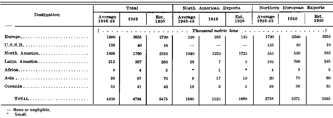 Estimated regional exports, representing totals of country figures reported to FAO, and figures reported from the main exporting countries for 1948 and 1949 are shown in Table 2.