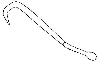 SAPI TYPE RIPPER. - On emploie pour accrocher la pièce de bois un crochet qui la frappe légèrement L'ouvrier plante l'outil juste au-dessus de la partie supérieure du manche, ce qui lui permet de mieux Yaccrocher. Comme le coup à donner est très léger, il porte presque sûrement, sans risque de blesser l'ouvrier. L'usage du sapi atténue tout risque d'accident. Il suffit de donner le croquis ci-dessus comme modèle à un forgeron pour qu'il transforme un sapi du type ordinaire en un «ripper».