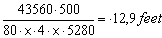 La longueur de rampe nécessaire pour couvrir 500 acres (200 hectares) en 10 jours de 8 heures avec un appareil qui se déplace à la vitesse de 4 miles (6,4 kilomètres) à l'heure sera calculée comme suit:
