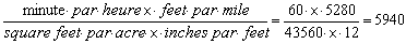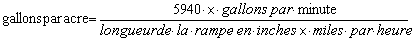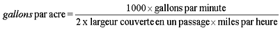 Ainsi avec une rampe de 25 feet (7,6 mètres) de long, une vitesse de déplacement de 5 miles (8 000 mètres) à l'heure, le débit de la pompe doit être de 25 gallons (95 litres) par minute si on veut répandre 100 gallons à l'acre (950 litres à l'hectare).