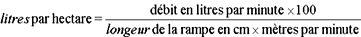Pour la pulvérisation aérienne la largeur couverte effectivement à chaque passage est plus grande que la longueur de la rampe. Si le débit des jets est connu, la consommation peut être calculée par l'équation suivante: