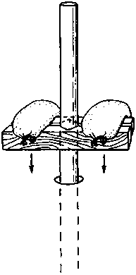Slightly less sophisticated, but widely used in North America during the first half of the 19th century is the spring pole (Figure 39). This is made from a tree 8-10 m long with a diameter tapering from approximately 20 cm at one end to 10 cm at the other. The large end is anchored to the ground possibly by piling rocks or logs on it. It is supported by a fulcrum at approximately one-third of the length from the lower end. The upper end might be at a height of 2.5-3.0 m. Stirrup ropes could be attached to the upper end for oscillating the pole.