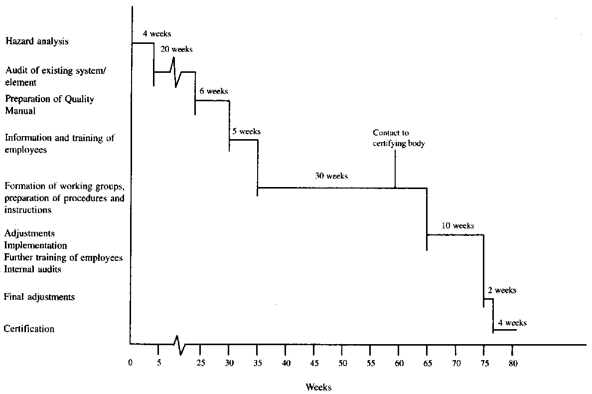 The work involved in establishing and implementing a quality system like ISO 9001 or 9002 should not be under-estimated. It is a very demanding project in terms of time and resources. (See Figure 63). The time required is often 1-2 years even for a medium-sized establishment.