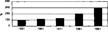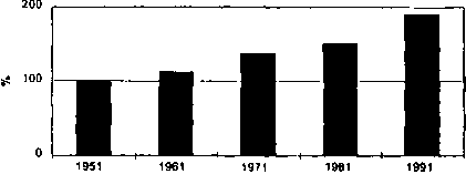 There has been more than a 200% rise in population density as well as density of houses (Figs 2, 3). The population density of Lakshadweep (1615/km2) ranks third in the country, next to Delhi (6352/km') and Chandigarh (5632/km'). Increase in population size will result in escalating human activities and increasing defaecation on the shores leading to the accumulation of pathogens and resulting in health hazards. Unidentified worms were observed wriggling in some wells (Rodrigues, 1996). Increased population will exert pressure on the limited land available for housing. Subsidies for transportation of construction materials could be provided. Power requirements from diesel generators will also steeply increase. Frequent power cuts are already common. The maximum increase in population density and density of houses has been recorded in Bitra, followed by Kavaratti and Agatti. Bitra is the smallest inhabited island (0.1 km2) with the largest lagoon (42 km'). In 1951 there were less than 50 inhabitants and the number has grown to 225 as per the latest census report. On this island, there is acute scarcity of freshwater which is rationed to its inhabitants. However, the region is rich in fish resources. Scarcity of freshwater is a chronic problem in most islands where groundwater instead of seawater is being desalinated. The minimum increase in population density is observed at Kalpeni, the island which boasts of intellectuals and where literacy is considered high.