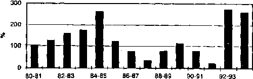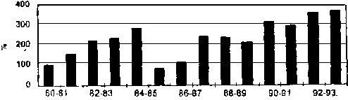Fig. 6. Percentage increase in fish landings in Lakshadweep islands. - Kiltan