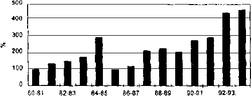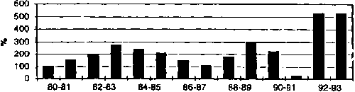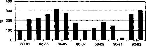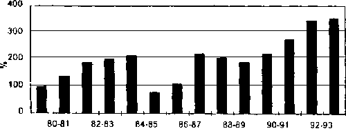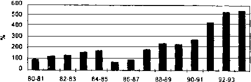 There has also been a dramatic increase in passenger and cargo traffic (Figs 4, 5). The 1985-'86 and 1986-'87 data on passenger traffic appear to he incomplete. Data presented exclude passengers and cargo transported by sailing vessels (odums). The data illustrate the increased mobility of islanders and increasing cargo demands. Up to 1987-88, passenger traffic was handled by m.v. Amindivi, m.v. Bharal, Seema and m.v Dweep Sethu, besides sailing vessels. From 1988-89 onwards, a 658 capacity passenger vessel, m.v Tipu Sultan was introduced. These vessels cannot enter the shallow lagoons and hence passengers have to be transported to the jetty and vice-ierva by small mechanized boats. From January 1992 onwards, two high speed catamarans, ni.v. Khadeeja Bivi and m.v Hameedath Bivi were commissioned for inter-island service. Unlike other passenger vessels, these catamarans can enter into the lagoon and berth at Kavaratti jetty, eliminating the boat jouney that had to be undertaken to board vessels. This was made possible by deepening the navigational channel in the Kavaratti lagoon. These vessels do not appear to be suited for the islands as they operate only during the fair season and their itineraries are unpredictable due to frequent breakdowns. It is not known whether any study on corals was carried out before and after deepening the channel. It will not be surprising if the area is found to be devoid of live corals.