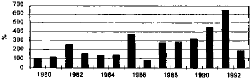 Fig. 6. Percentage increase in fish landings in Lakshadweep islands. - Minicoy