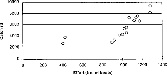 Fig. 7. Fishery statistics of Lakshadweep. - Relationship between fishing catch and effort