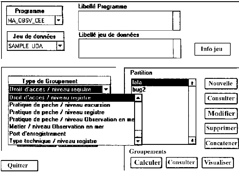 FIGURE 4B: ECRAN DE CHOIX DES CRITERES DE GROUPEMENT