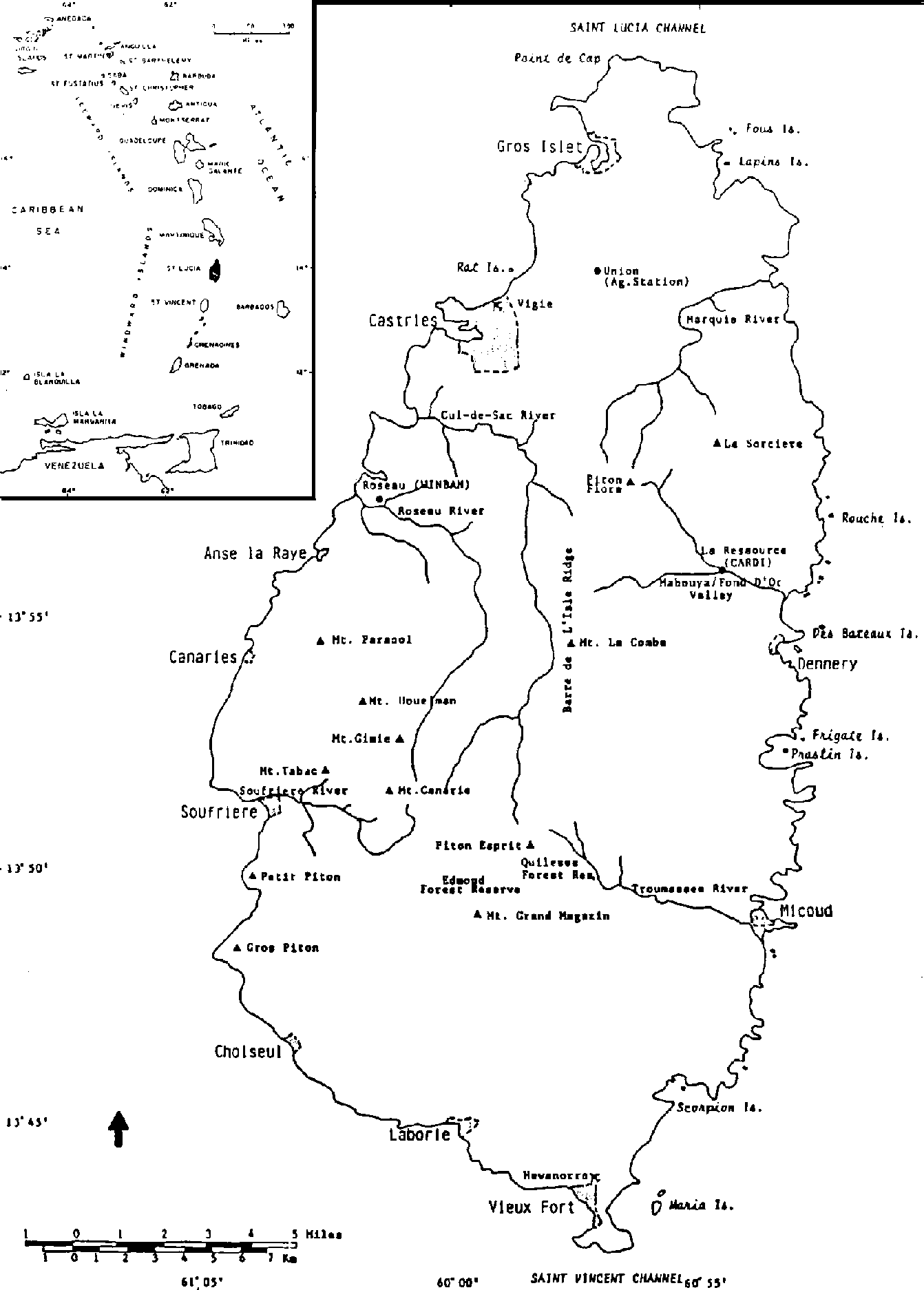 Map 1. Map of St. Lucia and location in the Caribbean region