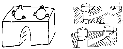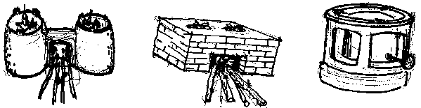 Traditional stoves in Mapak II (above) and the proposed improved version on the right