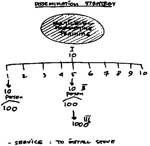 The proposed stove dissemination strategy for Bedugul village.