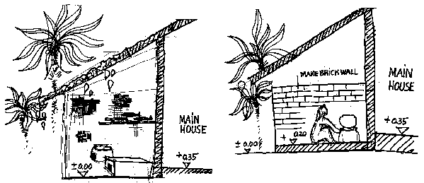 They noted that cooks sat for food preparation, cooking and serving. The ICS design was a two pothole design, with the fuel entrance and combustion chamber at the first pot hole, not between the two pot holes. The materials were mud, sand, bricks and an iron rod; the price was Rp. 3000 and the size the same as the traditional stove. The cooking and drying functions were maintained.