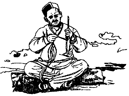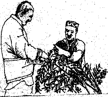 Bhang (Cannabis) is cultivated in the Chhota/Bada Bhangal of Kangra district and Karsog area of Mandi district of Himachal Pradesh for the extraction of fibre and seeds. Its green leaves are used for extracting narcotics (Fig. 5.5a, b & c) which is very addictive and its cultivation is also illegal. After maturation the harvested crop is set aside to dry. After drying, the seeds are collected and the fibre is separated from the stems and branches. Its fibre, being stronger than jute, is used for making ropes of varying thickness. The rope making process is depicted in Figs. 5.6a, b & c. Besides its acknowledged strength, it is one of the cheapest materials for rope making.