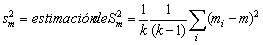 donde SB2 es la variancia de las medias de las unidades en torno a la media de la población. Una estimación no sesgada de la variancia de m será