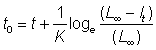 Si t0 est l'âge théorique auquel l = 0, la valeur de la constante sera donnée par l'équation: