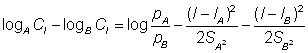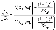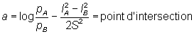 et, si l'on suppose en outre que l'écart type de la courbe de sélectivité est constant (autrement dit que SA = SB = S), l'équation peut être simplifiée: